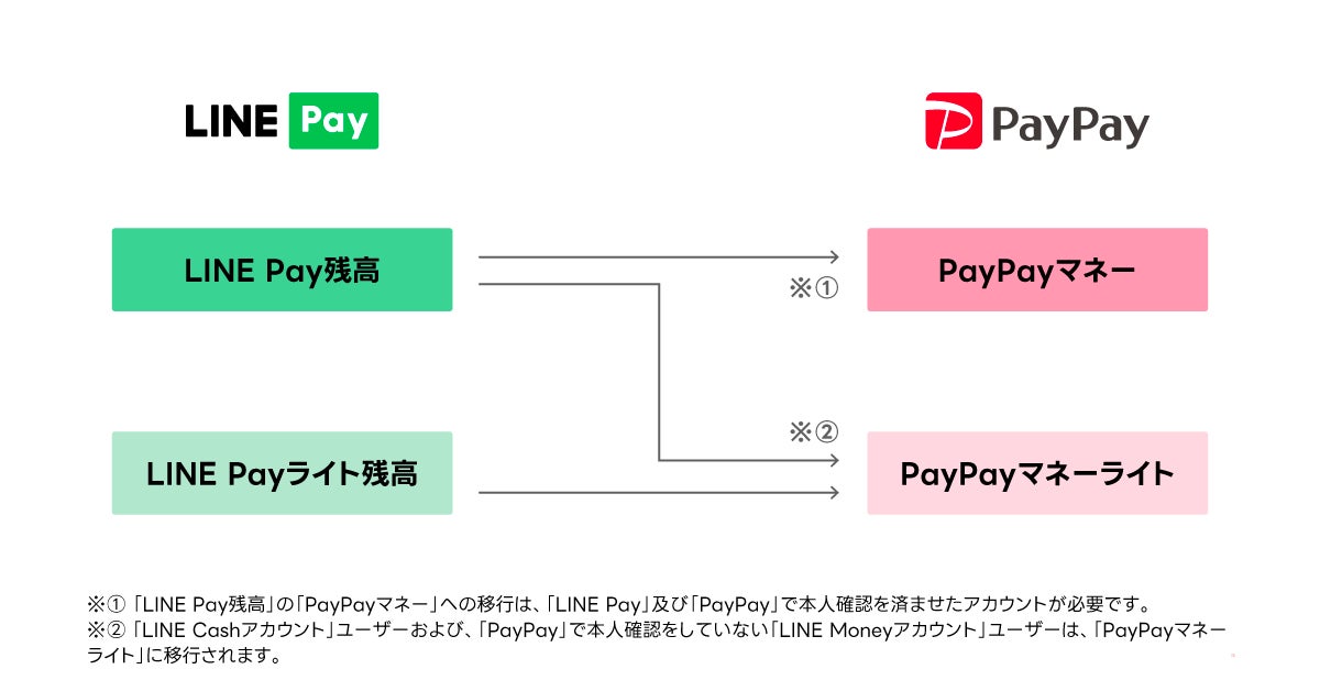 ・LINE Payユーザーが「LINE Pay残高」と「LINE Payライト残高」の2種の残高種別を保有する場合、「LINE Payライト残高」を優先的に移行します。