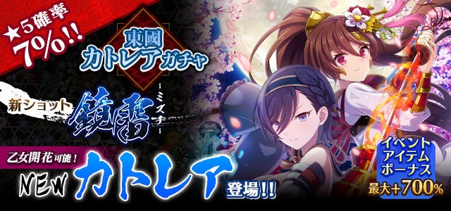 「東國カトレアガチャ」では、新ショット「鏡雷(ミズチ)」を持つ「【東國】カトレア&イサミ」が登場します。