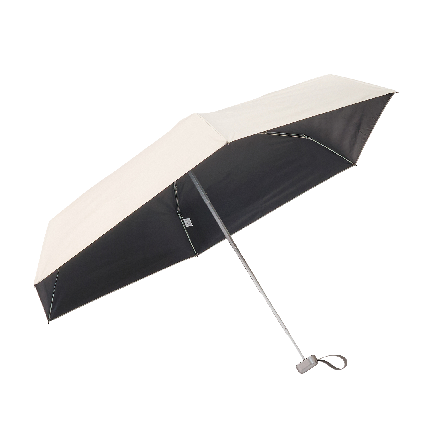 6本の親骨と5段階に折りたためる設計により、収納時のサイズは縦17cm、横6.5cmと手のひらに収まるほどのコンパクトさを実現。