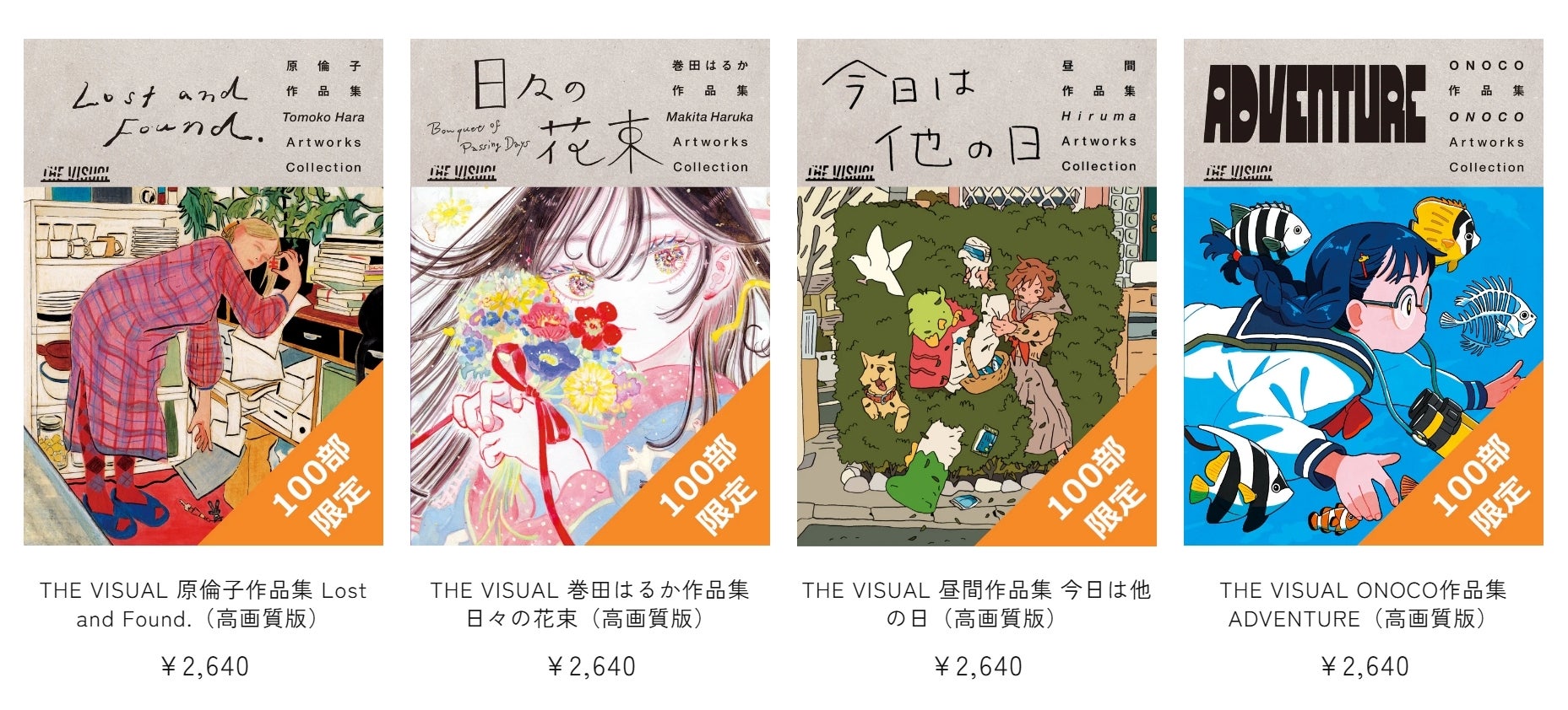 この特長を活かし、「TWO VIRGINS DIGITAL」の商品ラインナップ第一弾として、人気イラストレーターによる作品集シリーズ「THE VISUAL」から4作品が、当ストアだけの高画質&100部数量限定版のDC3コンテンツで販売されます。