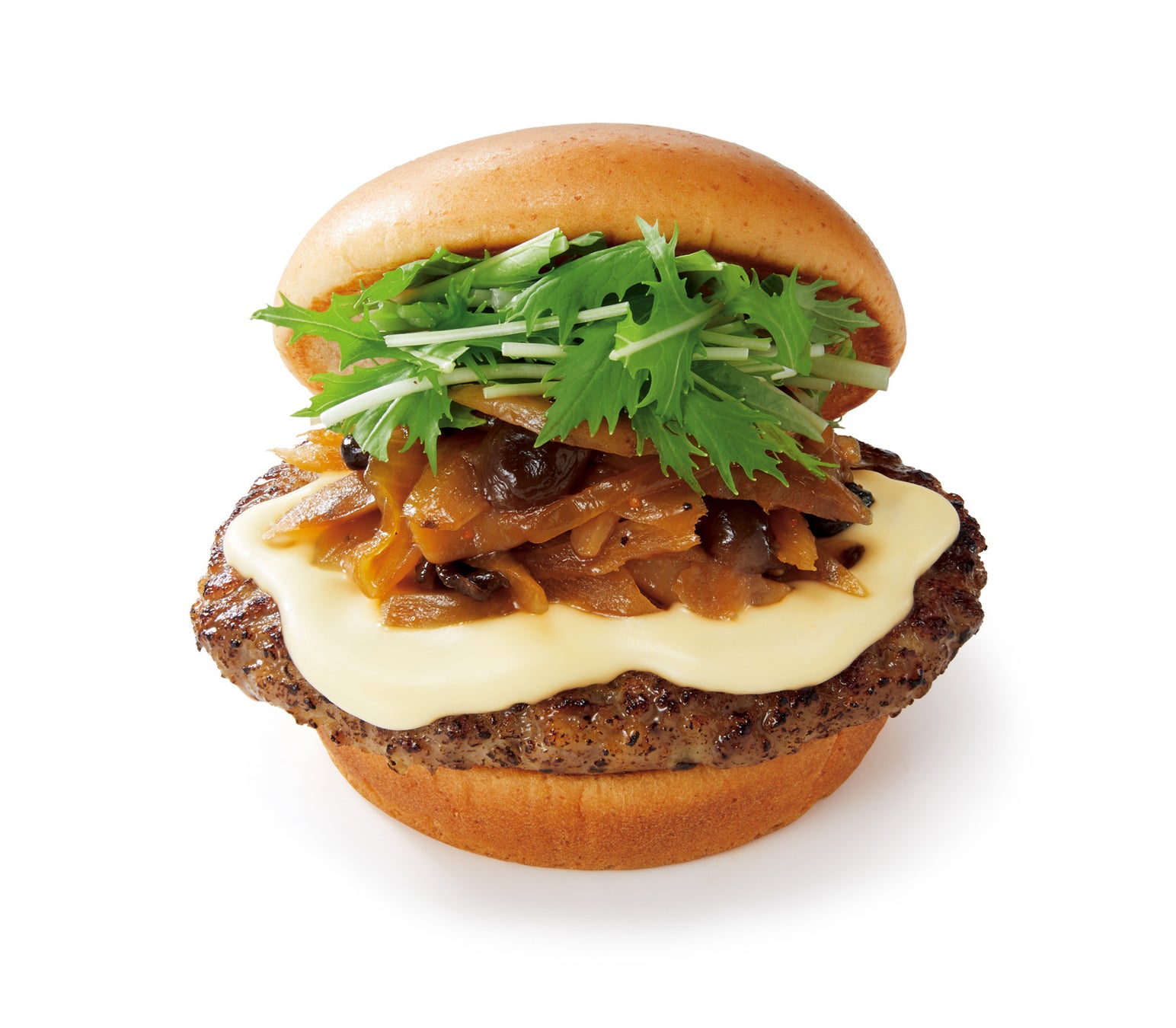 「とびきりハンバーグサンド<きのこ&チーズ>」は、ゴーダチーズとバターを加えたとろりと滑らかなチーズソースと、まろやかな熟成玄米黒酢をブレンドした醤油ベースのソースを絡めたきのことごぼうのソテーをハンバーグに合わせています。黒酢の程よい酸味ときのことごぼうの食感、そこに絡まるチーズの相性が抜群のハンバーガーです。