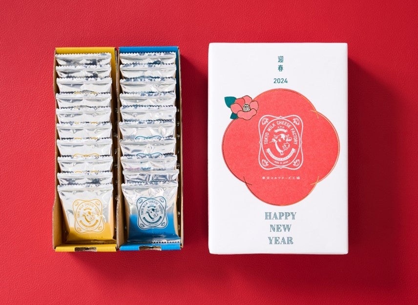 新春にふさわしい迎春ギフトとして、【東京ミルクチーズ工場】の代表作「ソルト&カマンベールクッキー」と「蜂蜜&ゴルゴンゾーラクッキー」の2種類を、2024年オリジナルデザインのパッケージでお包みしました。