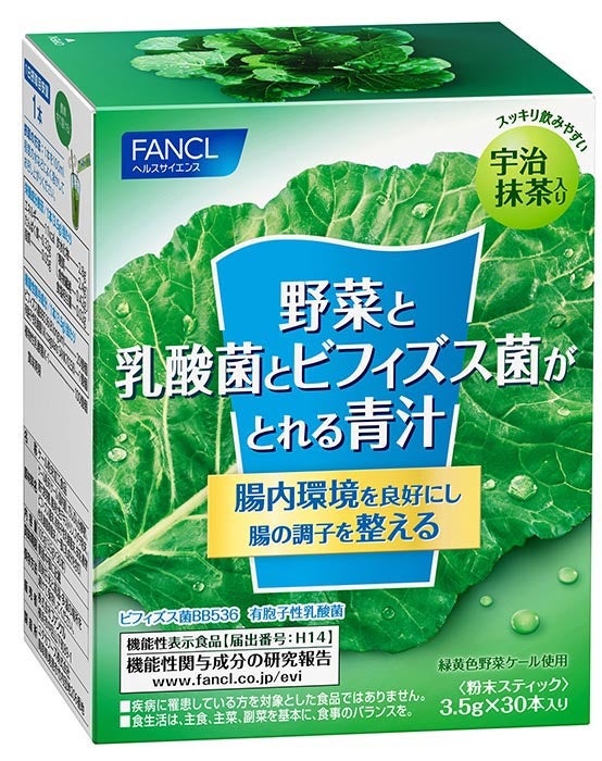 株式会社ファンケルは10月20日(木)から、「野菜と乳酸菌とビフィズス菌がとれる青汁」<30本入り:3,600円(税込)>を「腸内環境を良好にし、腸の調子を整える」機能性表示食品として通信販売と直営店舗、一部の一般流通で新発売します。機能性表示食品になり、お客様により分かりやすく機能を伝えることができるようになりました。野菜の栄養を補うとともに、腸内環境のケアができる製品です。