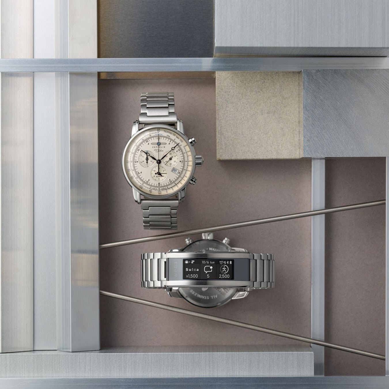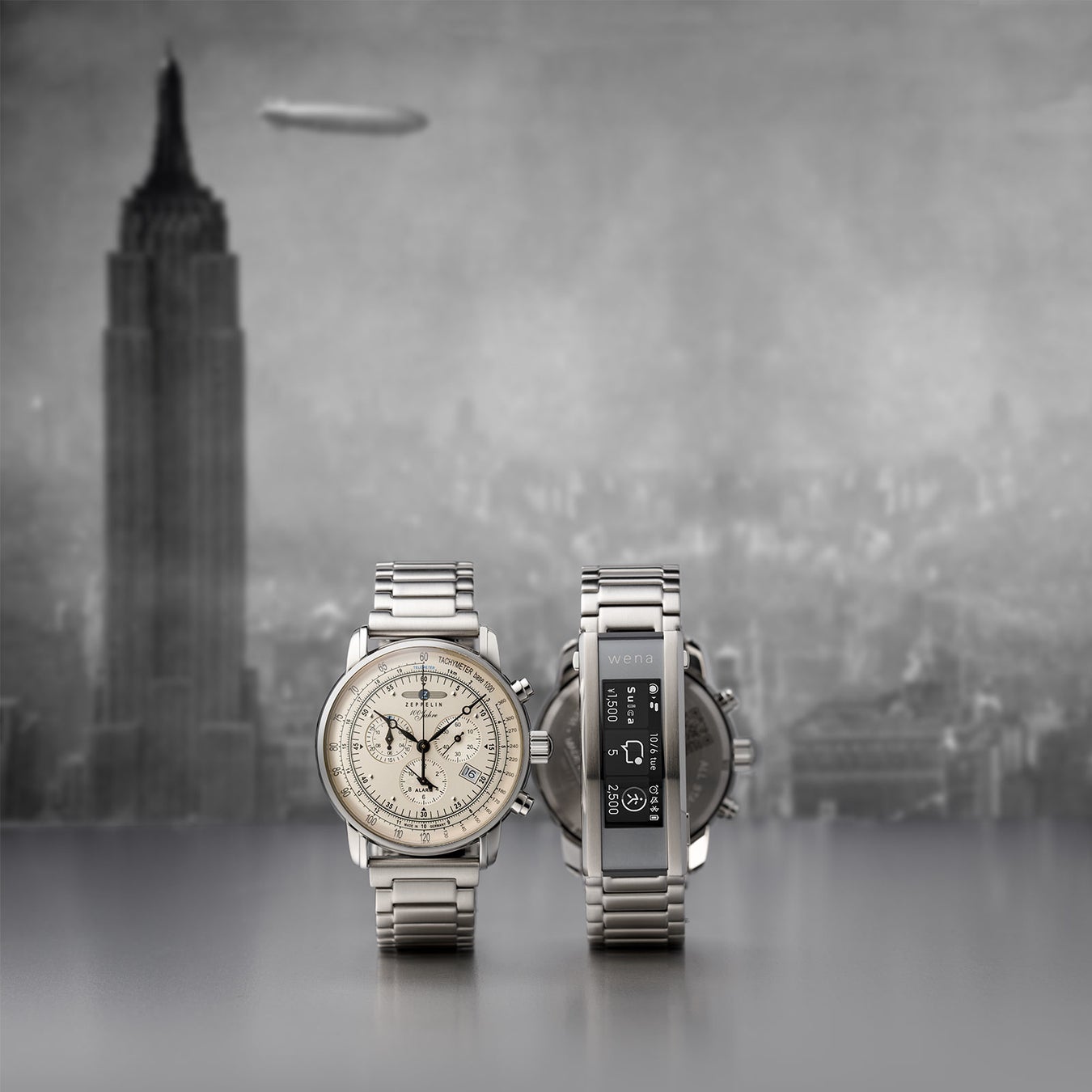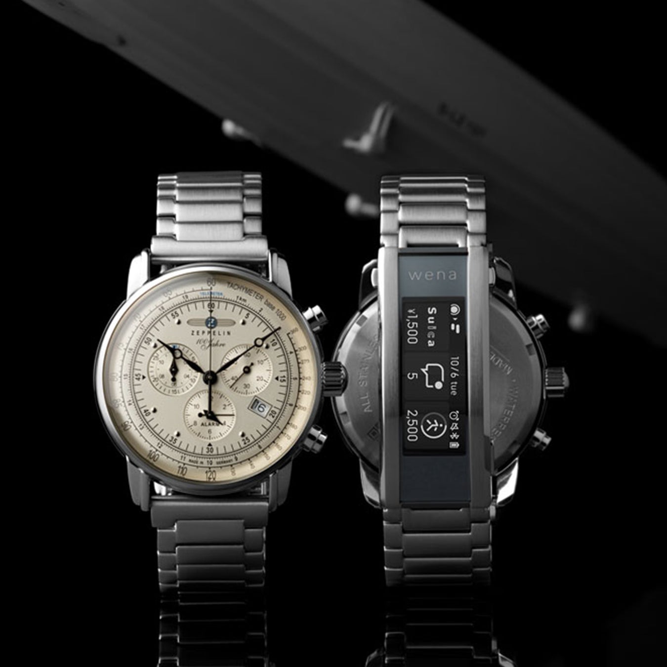 クラシカルな腕時計「ツェッペリン」 に、ソニーの「wena 3(ウェナスリー)」を搭載することで、スマートフォンを出すことなく非接触で買い物ができたり、ライフスタイルの変化により健康志向が高まる中、腕時計で細かい健康管理が可能に。