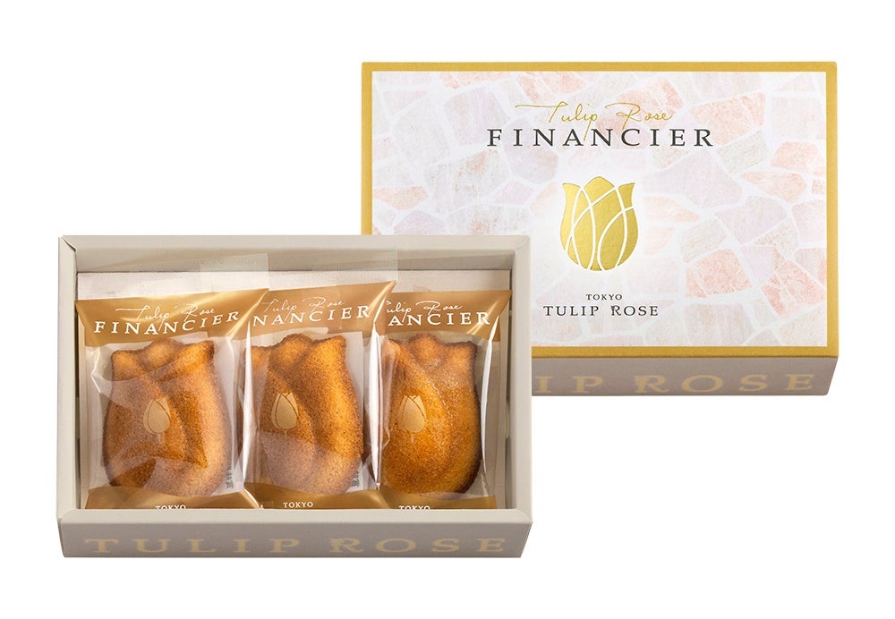 「TOKYOチューリップローズ」から新作ギフトが誕生!きつね色になるまで丁寧に焦がした発酵バターのコクと、金井シェフが選び抜いたアーモンドの旨みをぎゅっと詰め込んだ、自慢のフィナンシェ。慎重に見極めた火加減で、まるで“黄金色のチューリップ”のように焼き上がりました。ひとくち頬張れば、しっとりとした口どけに、アーモンドの贅沢な香りと焦がしバターのコクがジュワっと広がります。金井シェフの情熱で黄金色に花ひらいたチューリップを、ぜひ味わってみて。