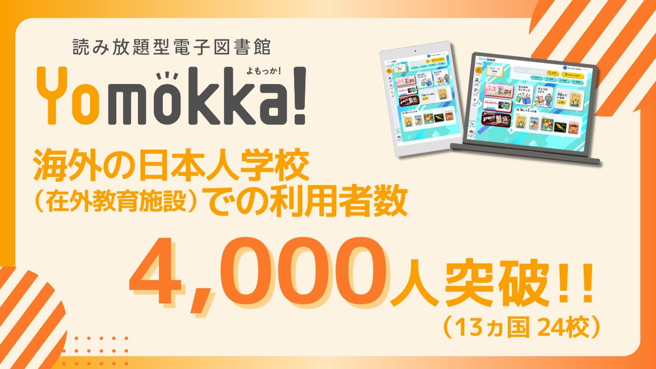 読み放題型電子図書館「Yomokka!(よもっか!)」の海外の日本人学校(在外教育施設)での利用者数が4,000人を突破!