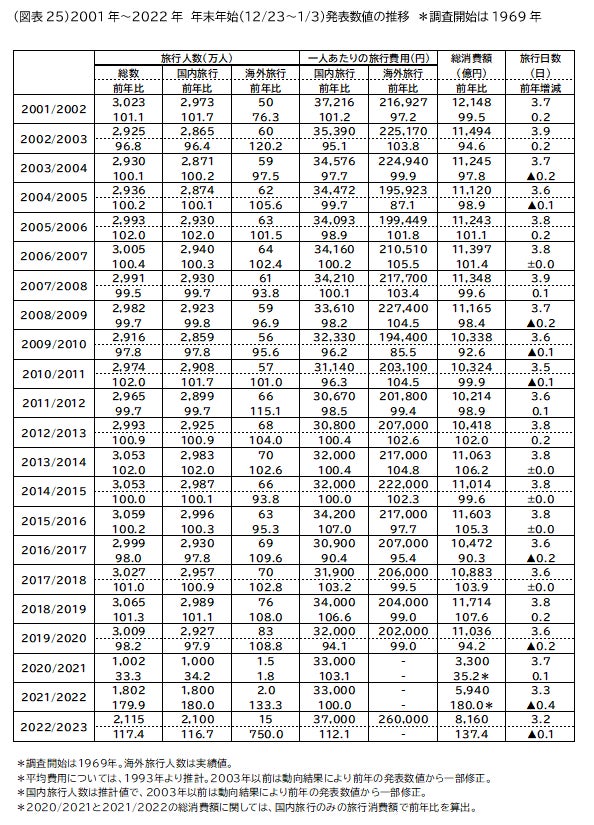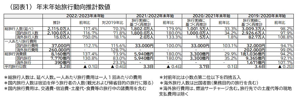 調査内容: 2022年12月23日~2023年1月3日に実施する1泊以上の国内旅行