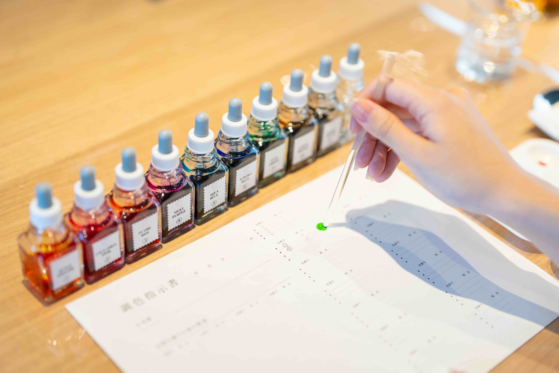推しを愛する皆さまへ、TRTならではの推し活を⾊で楽しむプランができました。インクづくり体験で推し⾊を作り、推し⾊のクリームソーダを飲みながら写真を撮ったり眺めたり……。ゆっくりと流れる湯河原の時間の中で、推しとのひと時をお楽しみください。インクづくり体験では、9⾊の原料の組み合わせにより900⾊以上のインク作りをお楽しみいただけますので、こだわりの⾊を作ることができます。