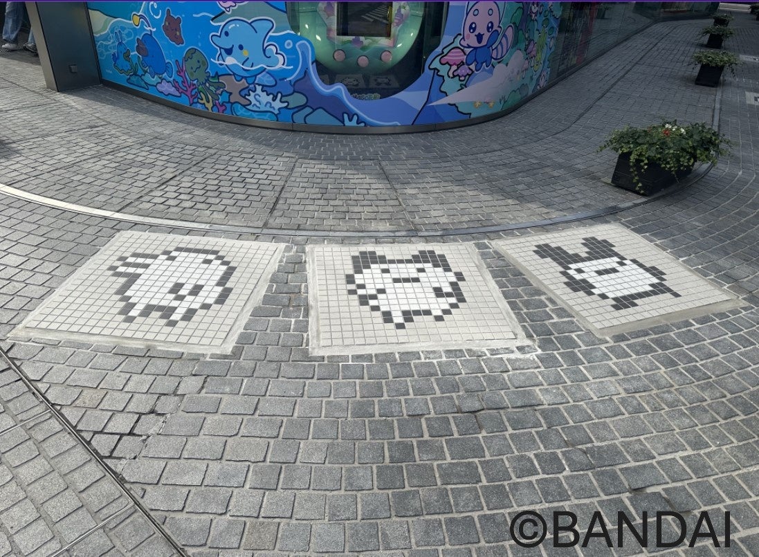 このタイルアートは、バンダイが発売する携帯型育成玩具「たまごっち」が、2026年11月23日に発売30周年を迎えることを記念して制作されました。全部で5枚あり、バンダイ本社入口前の地面に設置されています。それぞれ縦横90センチメートルの正方形のコンクリートの板に「たまごっちたち」がタイルでデザインされています。