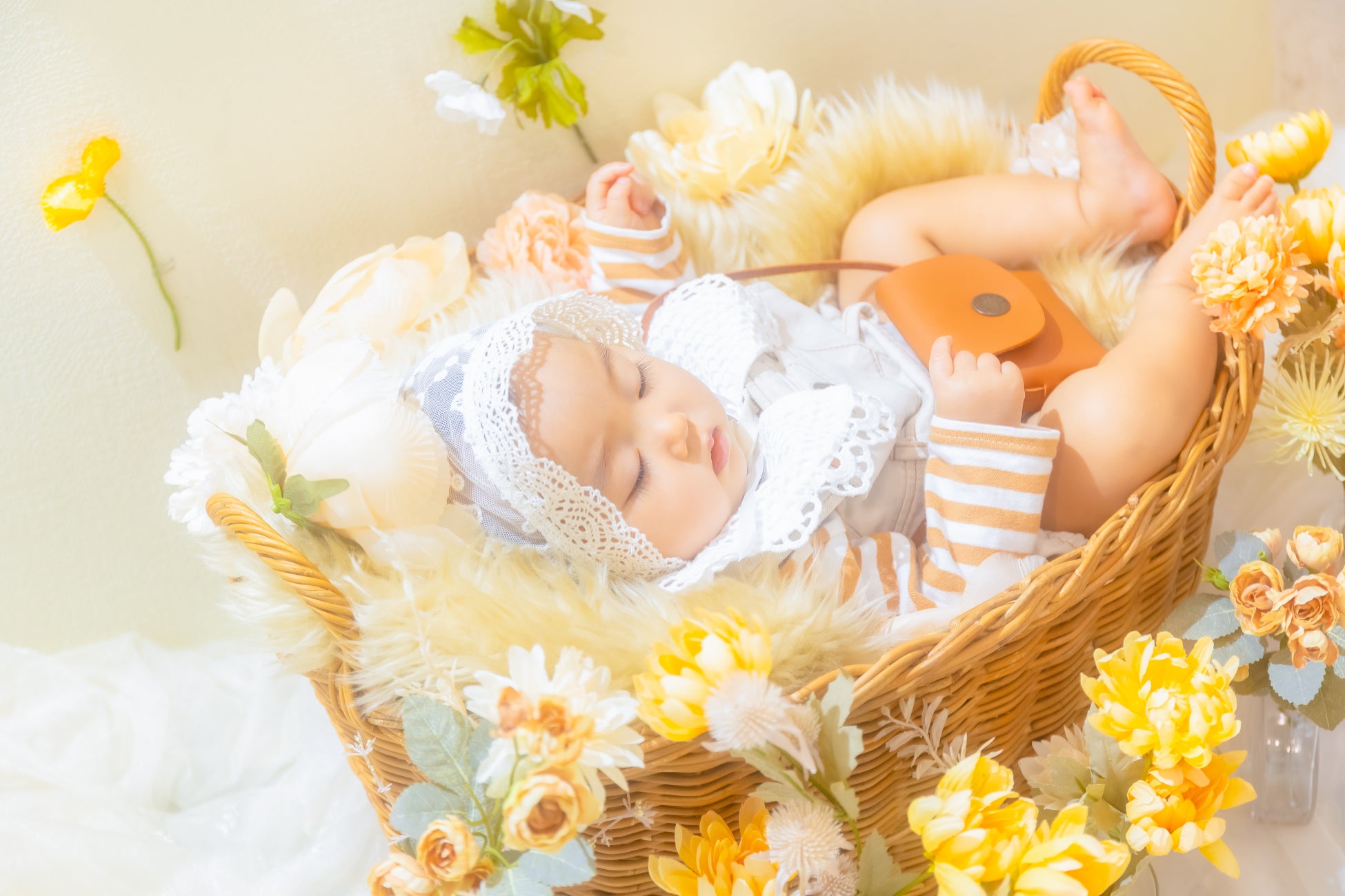 でも当店のスタジオ空間なら寝ちゃっても安心。お昼寝中の様子もこんなに可愛く残していただけます。