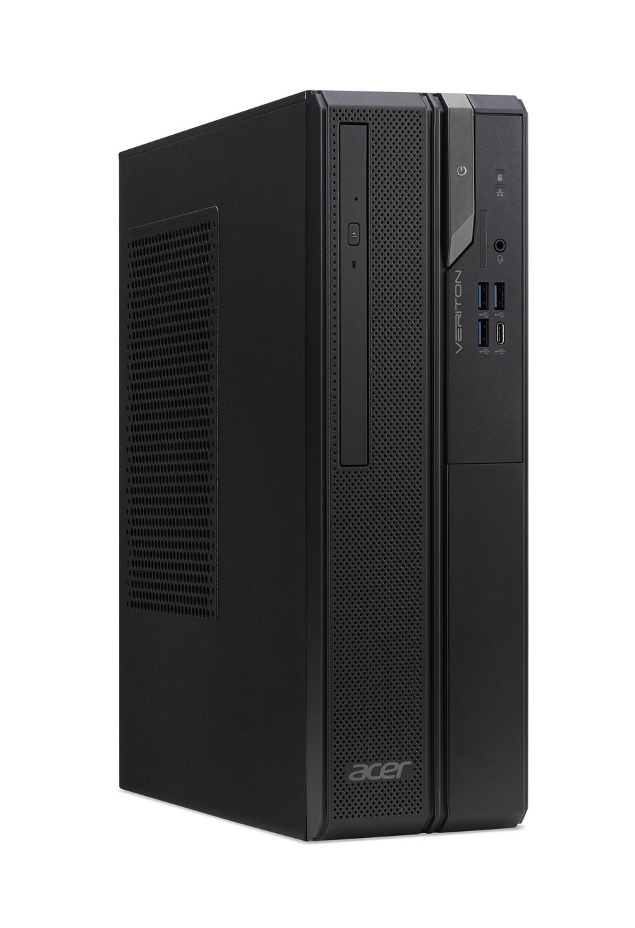 Veriton Xシリーズの新製品「VX2715G-F76Y」「VX2715G-F58Y」は、便利な機能を搭載しながらも省スペースにこだわり、本体の幅を約10cmに設計。手狭になりやすいデスク上でも置き場所を選ばず設置できます。また、セキュリティ機能としてケンジントン・ロック用取付穴を搭載しているため、オフィスはもちろん店舗事務所などへの設置もおすすめです。USBキーボードやUSB光学マウス、マウスパッドも同梱しているため、外部モニターにつないですぐに使用することができます。
