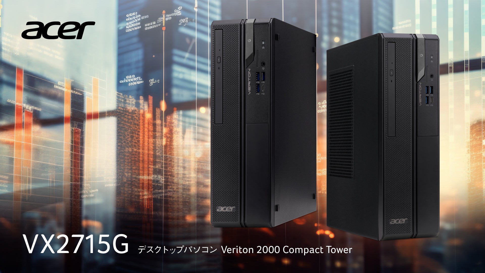 日本エイサー株式会社(本社:東京都新宿区、代表取締役社長:ボブ・セン)は、ビジネスデスクトップパソコンのVeriton(ベリトン)シリーズより、新モデル2機種「VX2715G-F76Y」「VX2715G-F58Y」を、法人市場に向けて本日2024年4月3日より発売します。今回発売する新モデルは置き場所を選ばない省スペース設計で、3タイプの映像出力に対応したマルチモニター環境でご使用が可能。さらに省エネかつ高効率で変換効率80%以上を実現する80PLUS BRONZE 180W電源を搭載。用途に合わせてお選びいただける、2タイプをラインナップしています。