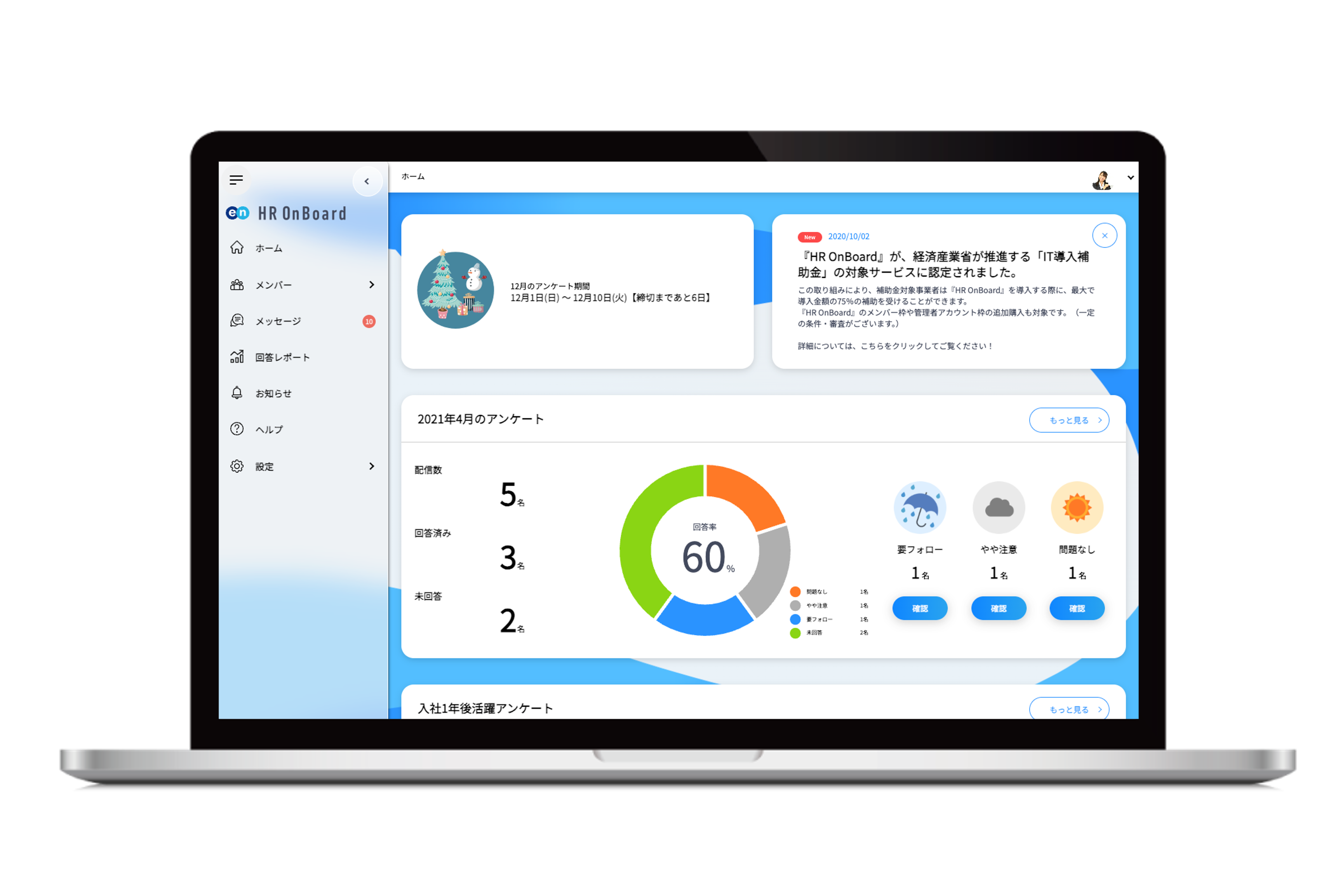 入社後の離職リスクを可視化する離職予防ツール『HR OnBoard』