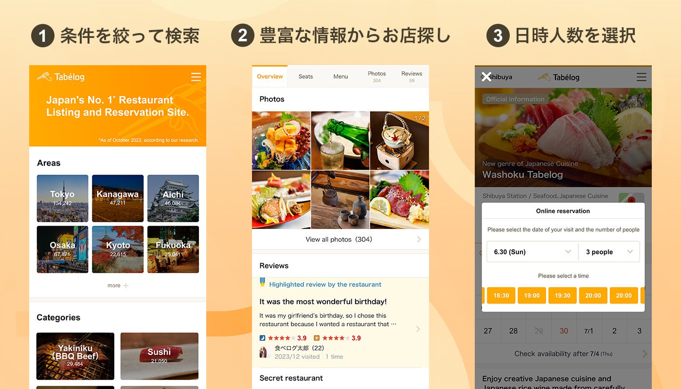 食べログ、インバウンド向けネット予約サービスを本格展開 -訪日客向けとして最大規模となる約35,000店が英語・中国語(繁体・簡体)・韓国語でネット予約可能に-