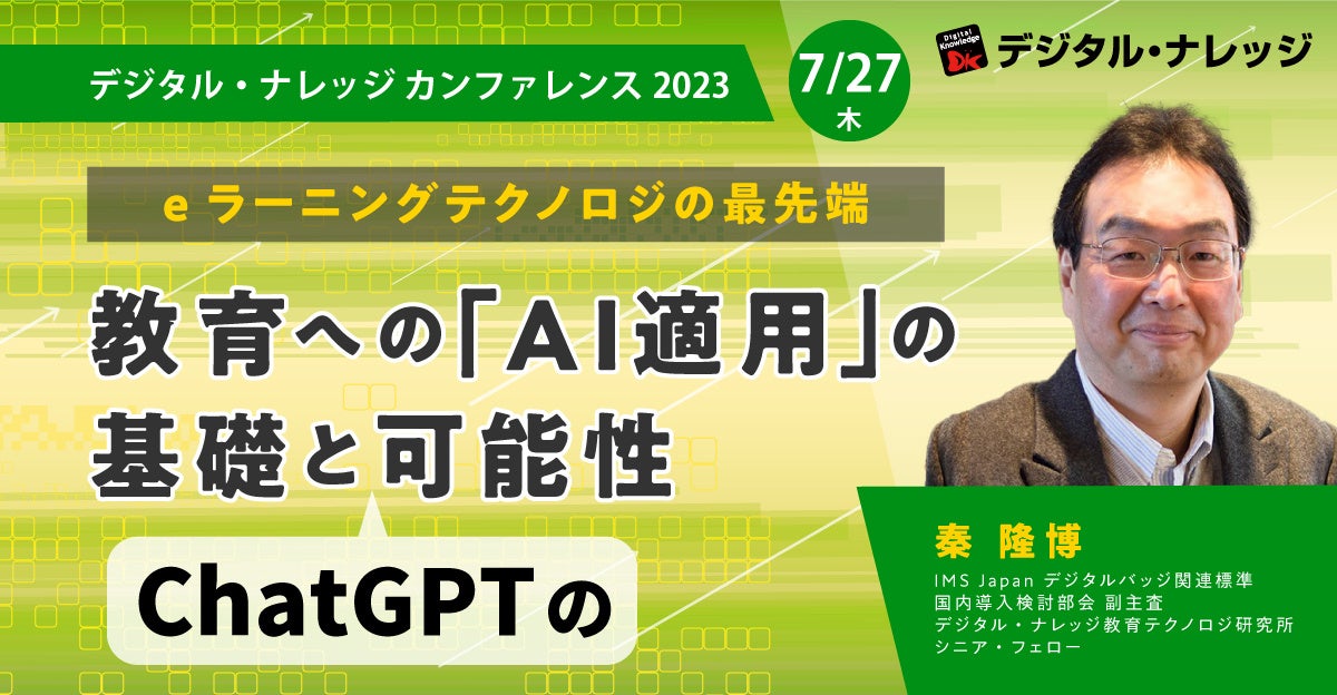 今回の講演では、教育×最先端テクノロジに関する調査・研究を重ねているデジタル・ナレッジ教育テクノロジ研究所より、ChatGPTを含めたAI×教育適用の最前線と先進事例についてご紹介します。