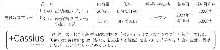 「+Cassius(プラスカシウス)光触媒スプレー」2タイプを発売