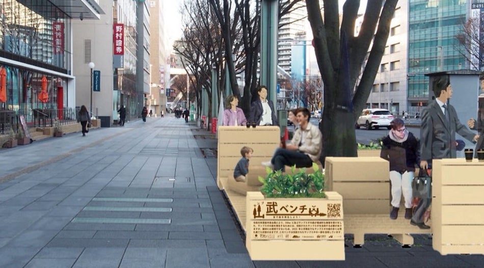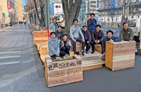 千葉大学工学部建築学コースの学生が中央公園プロムナードに山武ベンチ・パークレットを設置~歩きたくなるまちづくりの実践研究~