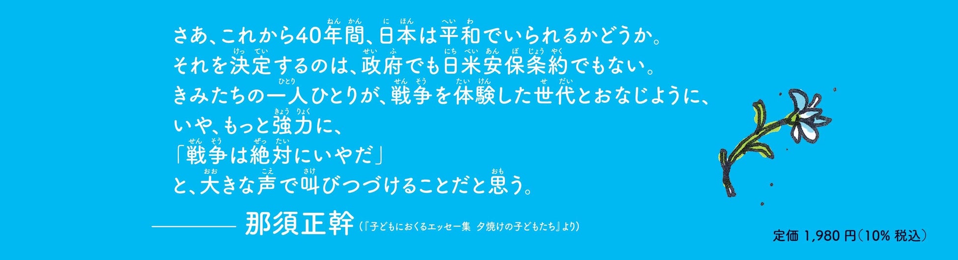 株式会社ポプラ社は、絵本『やくそく ぼくらはぜったい戦争しない』(作/那須正幹・絵/武田美穂)を2月5日(水)に発売いたしました。