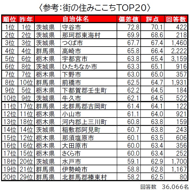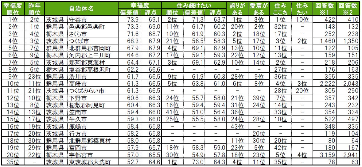 いい部屋ネット「街の幸福度 & 住み続けたい街ランキング2023<北関東版>」(街の住みここちランキング特別集計)発表