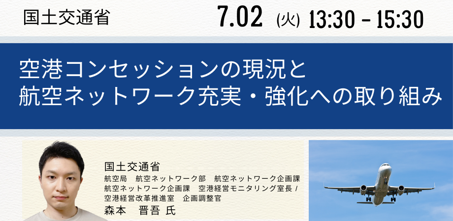 【JPIセミナー】国土交通省「空港コンセッションの現況と航空ネットワーク充実・強化への取り組み」7月2日(火)開催