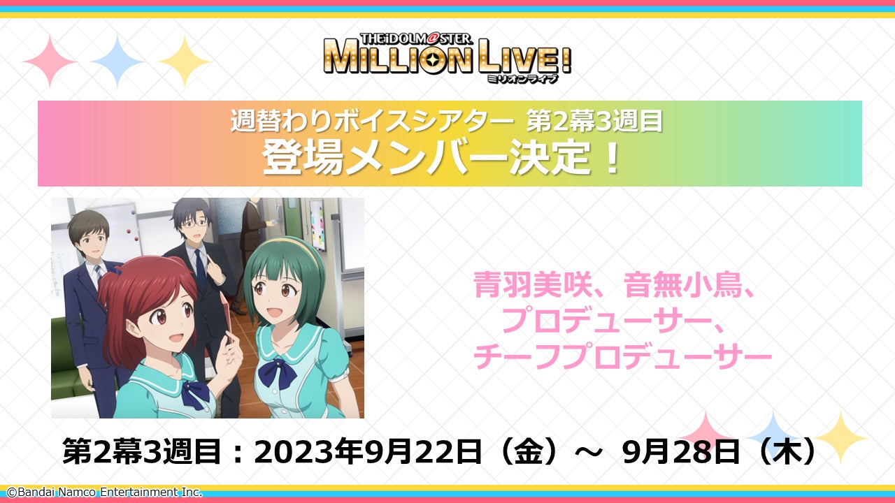 【ミリアニ】第3幕舞台挨拶情報を公開!本日9/19(火)15時よりローチケ先行開始!第2幕3週目の来場者特典は「コマフィルム第2弾」!週替わりボイスシアターの登場メンバーも公開!