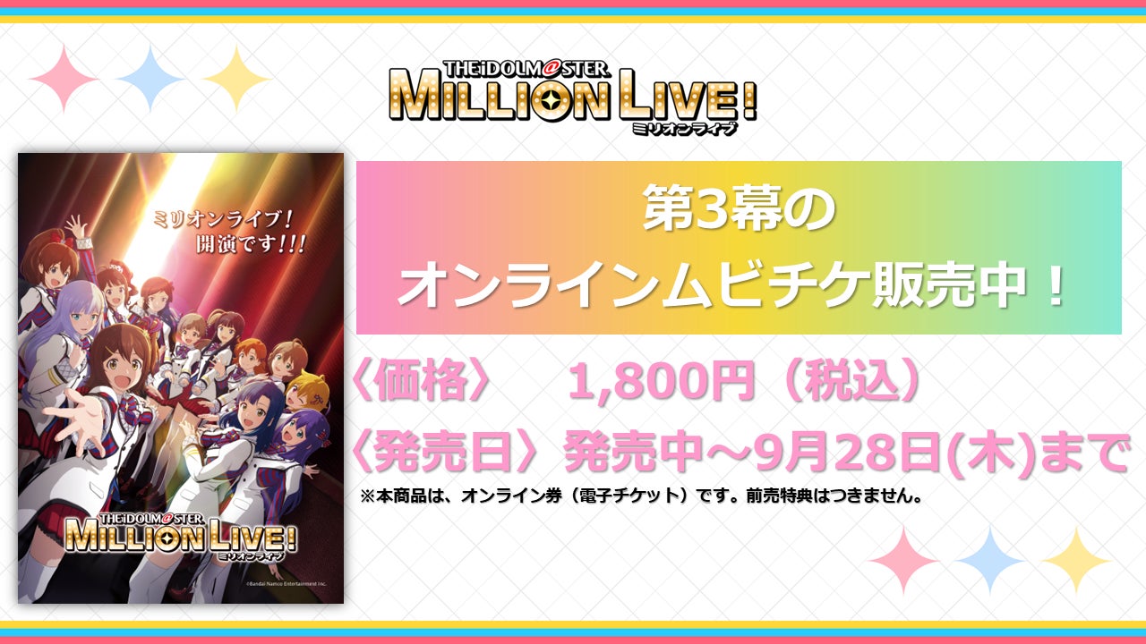 ※ムビチケオンライン券「アイドルマスター ミリオンライブ! 第3幕」は1枚につき、