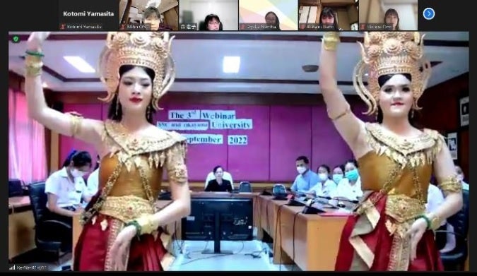 また、オンラインによるタイの学生達による民族舞踊の披露、シーマハサラカム看護大学や寮の様子についてビデオで紹介がありました。寮での学生たちの生活が垣間見えました。来年度は、是非岡山大学看護学専攻の紹介ビデオの作成を行いたいと思っています。短い時間ではありましたが、とても充実した楽しい時間を共有することができました。