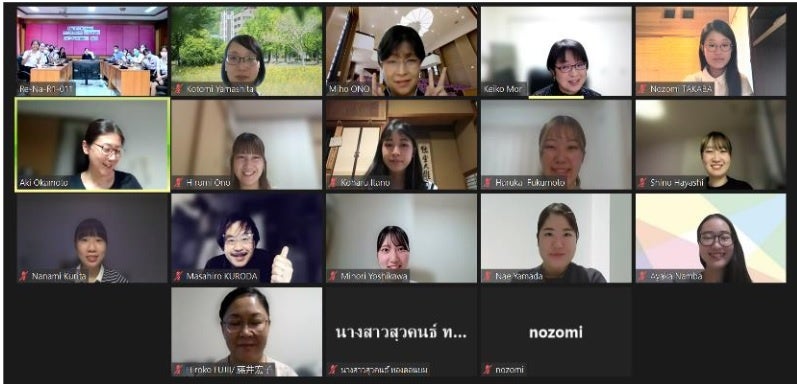 コロナ禍で、相互の大学訪問はできていませんが、オンラインによる交流を継続しています。本年度は、学生による日本、タイの文化や食べ物の紹介、各大学の紹介、COVID-19禍における看護教育の実践内容の紹介を行ったあと、相互にディスカッションを行い、互いの国や大学、看護についての学びを深め合い、学生、教員同士の関係性をより深めることができました。