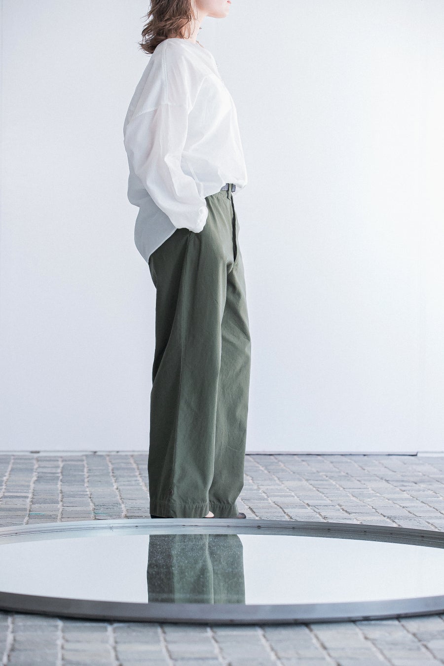 1943年頃より第二次世界大戦中にアメリカ陸軍の兵士へ支給されていたフィールドパンツをモデルに製作したアイテム。1943〜1944年頃までの2年間だけ製造されていたと言われており、US 3rdタイプのジャングルファティーグパンツよりも更に希少なアイテムとされています。CIOTAでも展開したことがなく、アーバンリサーチだけの特別なモデルとなっています。ウエストと裾にそれぞれアジャスター釦が付いており、必要に応じて調整が可能。こちらも“1st ベイカーパンツ”のスビンコットンのウエポン素材を使用し、その製品にストーンバイオ加工を施すことで、より風合いが増した唯一無二の逸品に仕上がっています。