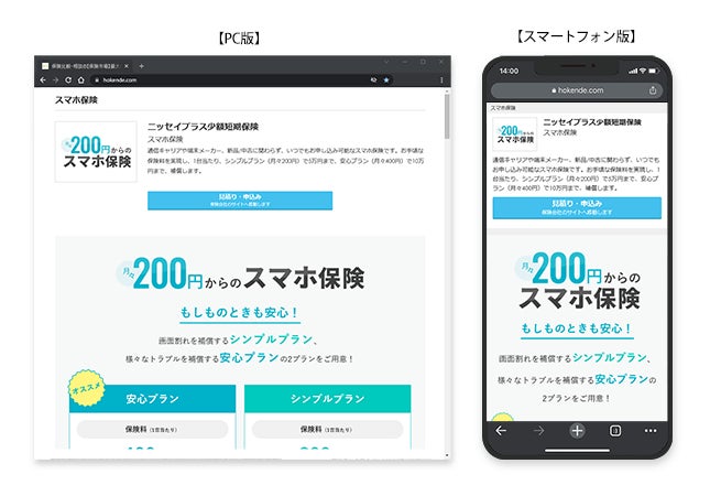 株式会社アドバンスクリエイト(本社:大阪府大阪市、代表取締役社長:濱田 佳治、東証プライム・福証・札証、証券コード:8798、以下「当社」、https://www.advancecreate.co.jp/ )が運営する国内最大級の保険選びサイト「保険市場」( https://www.hokende.com/ )において、ニッセイプラス少額短期保険株式会社(本社:東京都千代田区、代表取締役社長:光本 正、以下「ニッセイプラス少額短期保険」)の『スマホ保険』の掲載を開始いたしましたので、お知らせいたします。