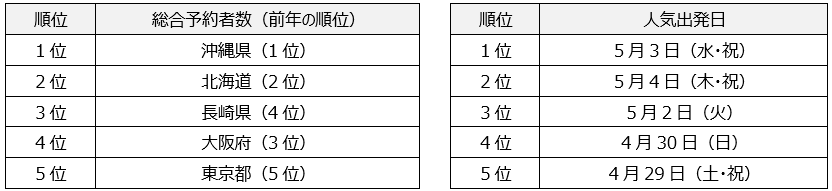 2023年ゴールデンウィーク旅行予約動向