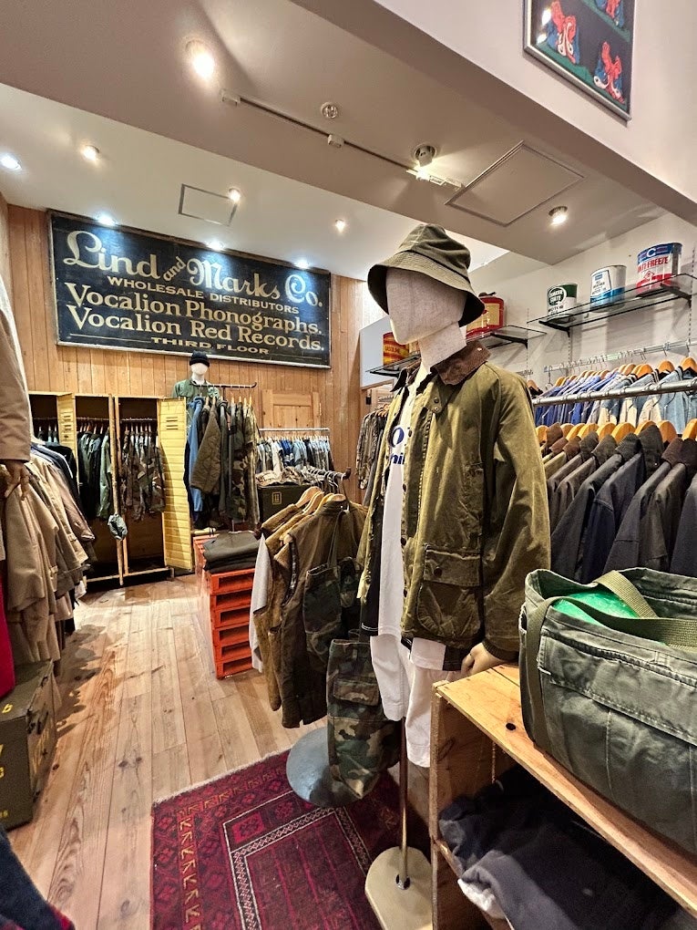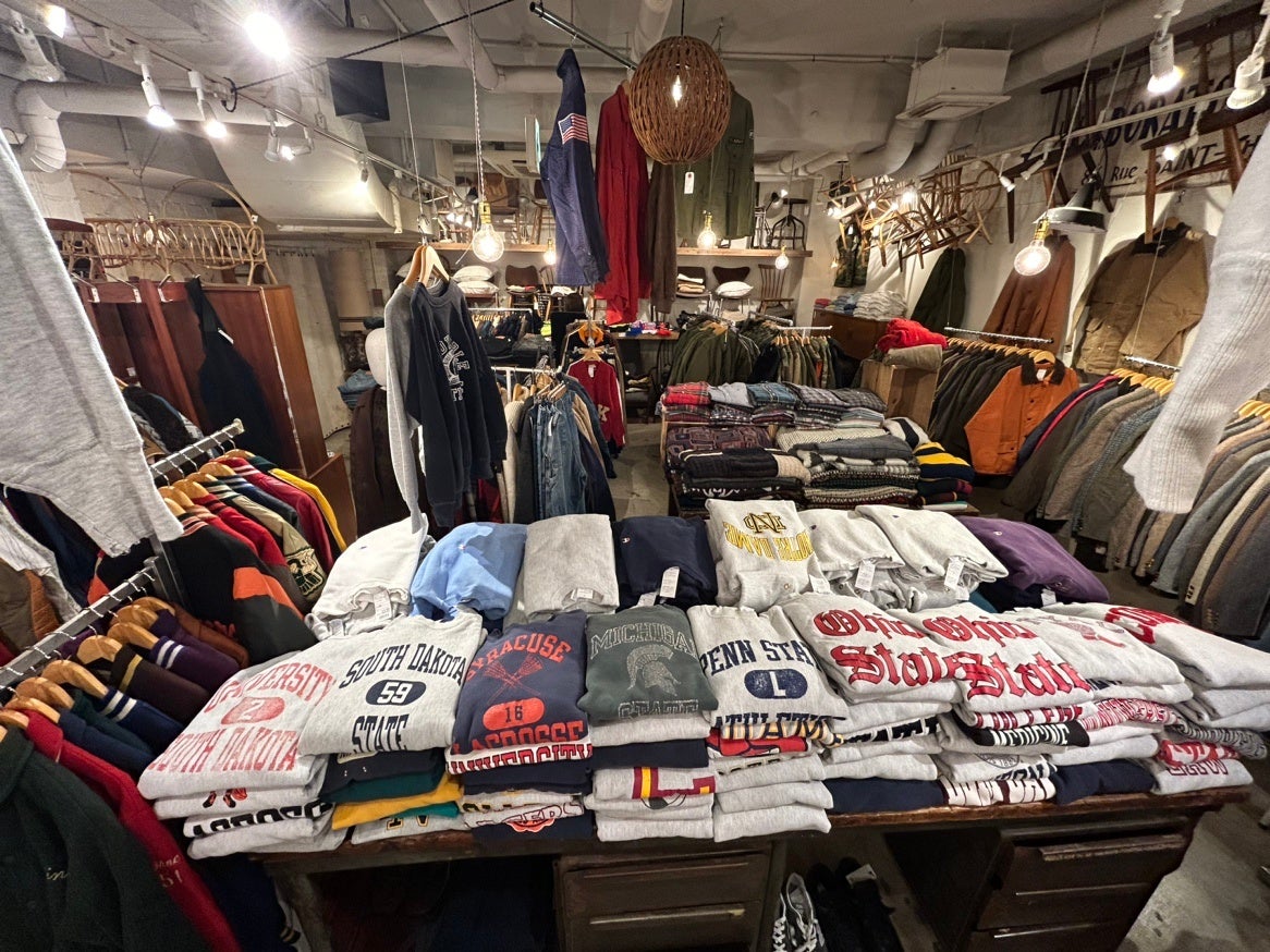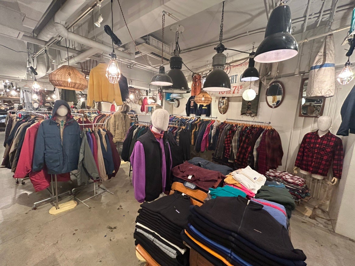 店内のメインとなる古着のラインナップはバリエーションを豊富に品揃えしており、商品量だけではなく、スタイル提案に着目。「スポーツ」、「ミリタリー」、「アウトドア」などの古着を多数のマネキンを使用ながらFUJI STORE流に提案しています。