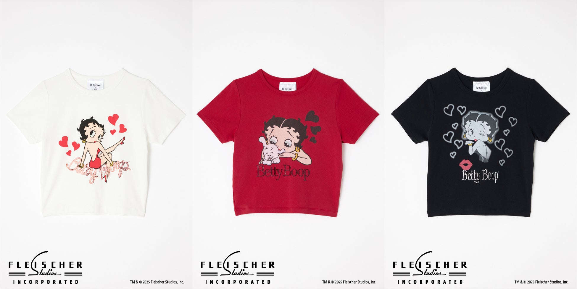 現在もファッションアイコンとして世界中で愛され続けいるBetty Boop™️をSLYの世界観に取り入れました。ベティーちゃんがフロントに刺繍されたキャミソールやラインストーンのロゴがポイントのコンパクトTシャツ、ハート型のアイレットディテールがポイントのビッグTシャツ、フロントのワッペン刺繍がポイントのキャップ全4型を発売いたします。