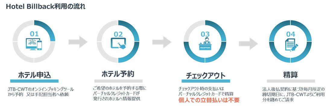 ビジネストラベルマネジメントと出張・経費精算管理ソリューションを提供する株式会社JTBビジネストラベルソリューションズ(以下「JTB-CWT」)と、企業に対する金融・決済サービスを提供する株式会社JTBビジネスイノベーターズは、Amadeus IT Group S.A.※1が開発する、Conferma※2を搭載したホテルペイメントプラットフォームである「Hotel Billback」※3を日本で初めて導入し、株式会社JTBが発行するMastercard®のバーチャルクレジットカードナンバー(以下「VCN」)※4によるホテル予約と精算代行のサービス提供を開始いたします。これにより、ホテル予約から精算までをワンストップに行うことが可能となり、海外出張時の利便性が高まります。