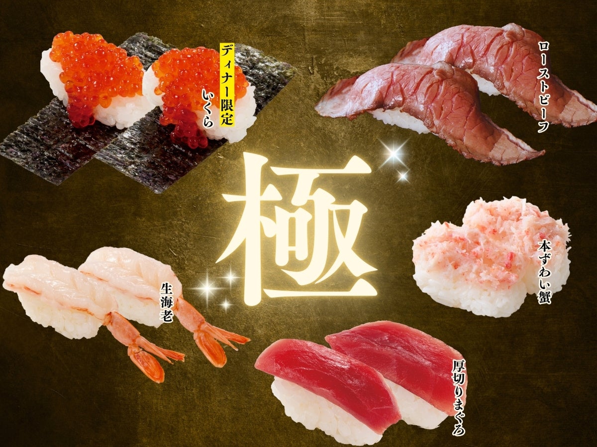 そしてこの度、2025年8月21日(木)~ 2025年9月10日(水)の期間限定にて、通常のネタとともに、特別ネタが堪能できる「極 上にぎり寿司コース」が登場!