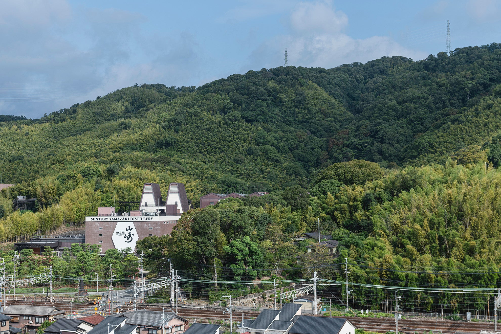山崎蒸溜所は、1923年に日本初の本格的なモルトウイスキー蒸溜所として、建設に着手しました。京都の南西、天王山の麓、四季の移ろい豊かな自然に抱かれ、万葉の歌にも詠まれるほどの名水の里に立地し、桂川・宇治川・木津川が合流する地形によるウイスキーの熟成に適した湿潤な環境で、さまざまな発酵槽・蒸溜釜・熟成樽を使い分けながら、日本のウイスキーならではの多彩な原酒を生み出し続けています。