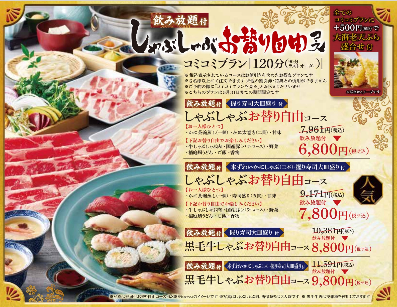 飲み放題付き「しゃぶしゃぶお替り自由コース」について