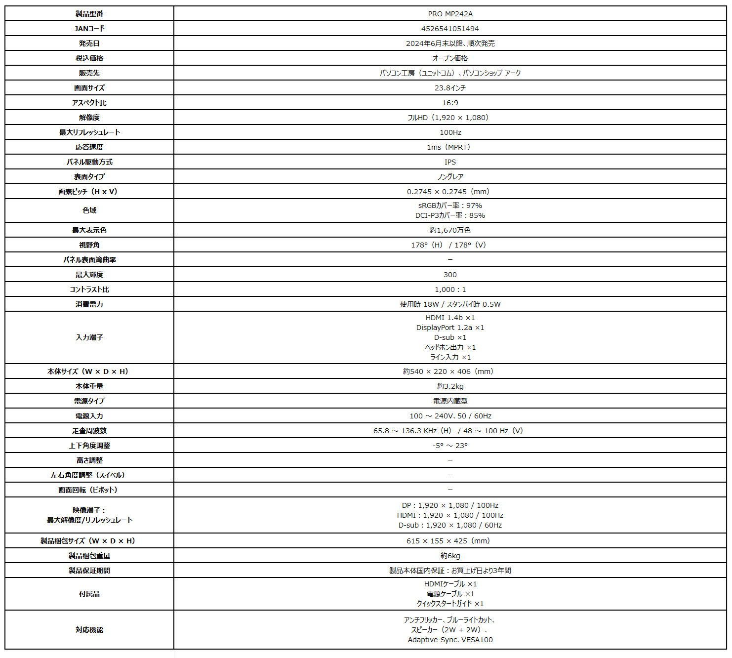 https://jp.msi.com/Business-Productivity-Monitor/PRO-MP242A