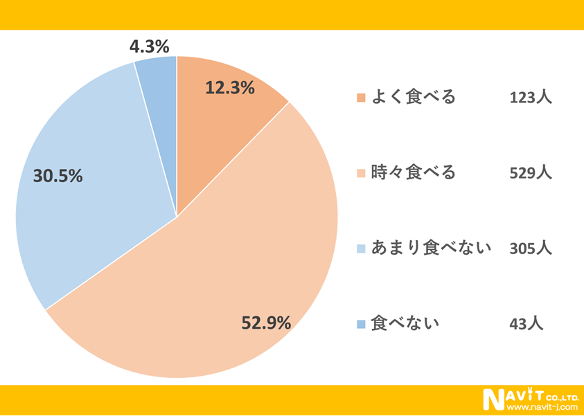 「よく食べる」という方が12.3%で「時々食べる」の52.9%と合わせると6割以上の方が比較的缶詰を食べているようです。「あまり食べない」という方も30.5%いらっしゃいます。