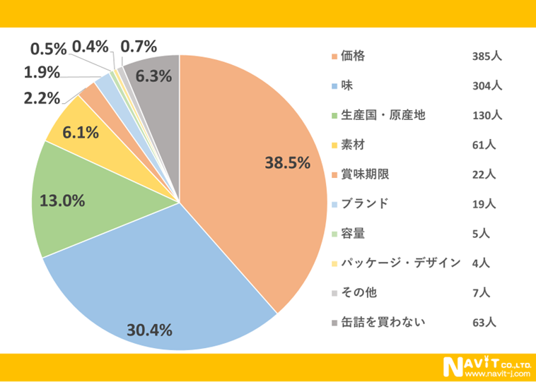 缶詰を購入する際、最も重要視しているポイントは何ですか?(対象者:1000人)