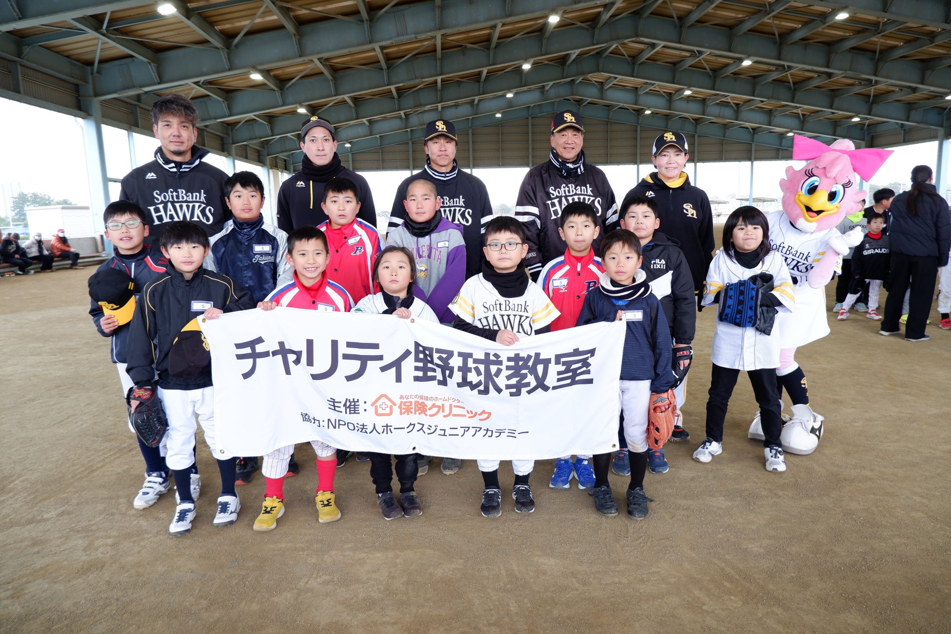 福岡ソフトバンクホークスの2024年シーズンオフィシャルスポンサーの保険ショップ『保険クリニック®』(運営:株式会社アイリックコーポレーション)は、1月11日(土)に福岡県内にてホークスジュニアアカデミーのコーチたちを迎えてチャリティ野球教室を開催いたしました。当日は63名の小学生たちが参加しました。
