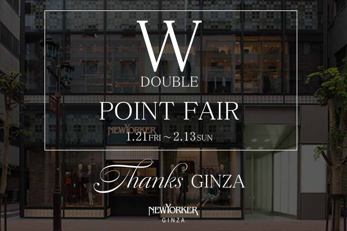 衣料事業の主力ブランドNEWYORKERを中心とした衣料服飾品の企画、製造、販売、不動産の売買、仲介、賃貸管理を行っている株式会社 ダイドーフォワード(本社:東京都千代田区/代表取締役:鍋割 宰)は、ニューヨーカー銀座フラッグシップショップにて「THANKS GINZA W-POINT FAIR」を開催いたします。