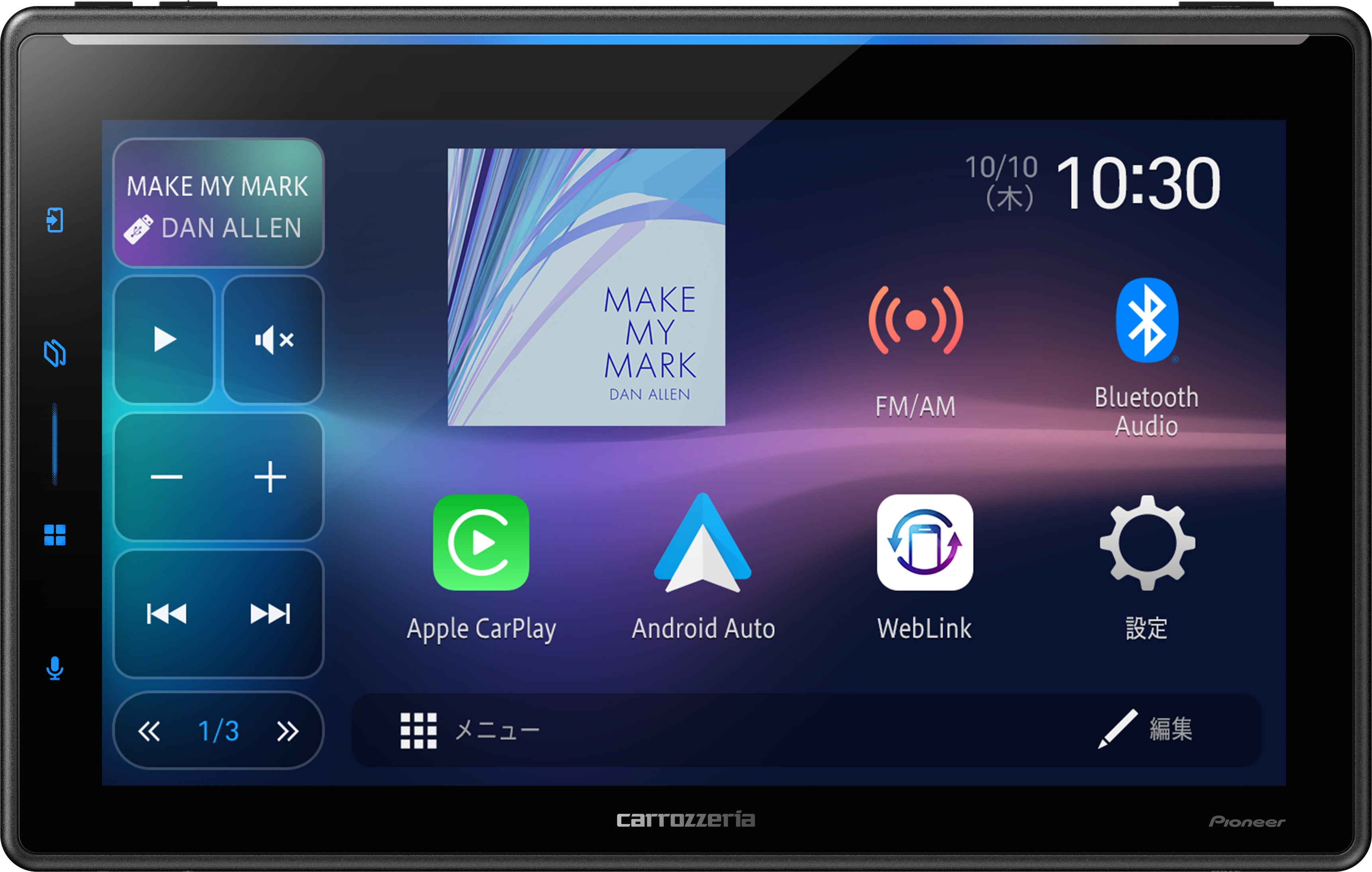 ワイヤレス接続での「Apple CarPlay」「Android Auto™」に対応した、フローティングタイプの10.1 インチ大画面ディスプレイオーディオ。ディスプレイの上部に、音楽やルート案内に光が連動する「ルミナスバー」を搭載し、ドライブを楽しく快適にサポートします。また、新しいインターフェース「スプリットスクリーン」と専用アプリ「PxLink」の採用により、高いエンタテインメント性とスムーズな操作性を両立しています。