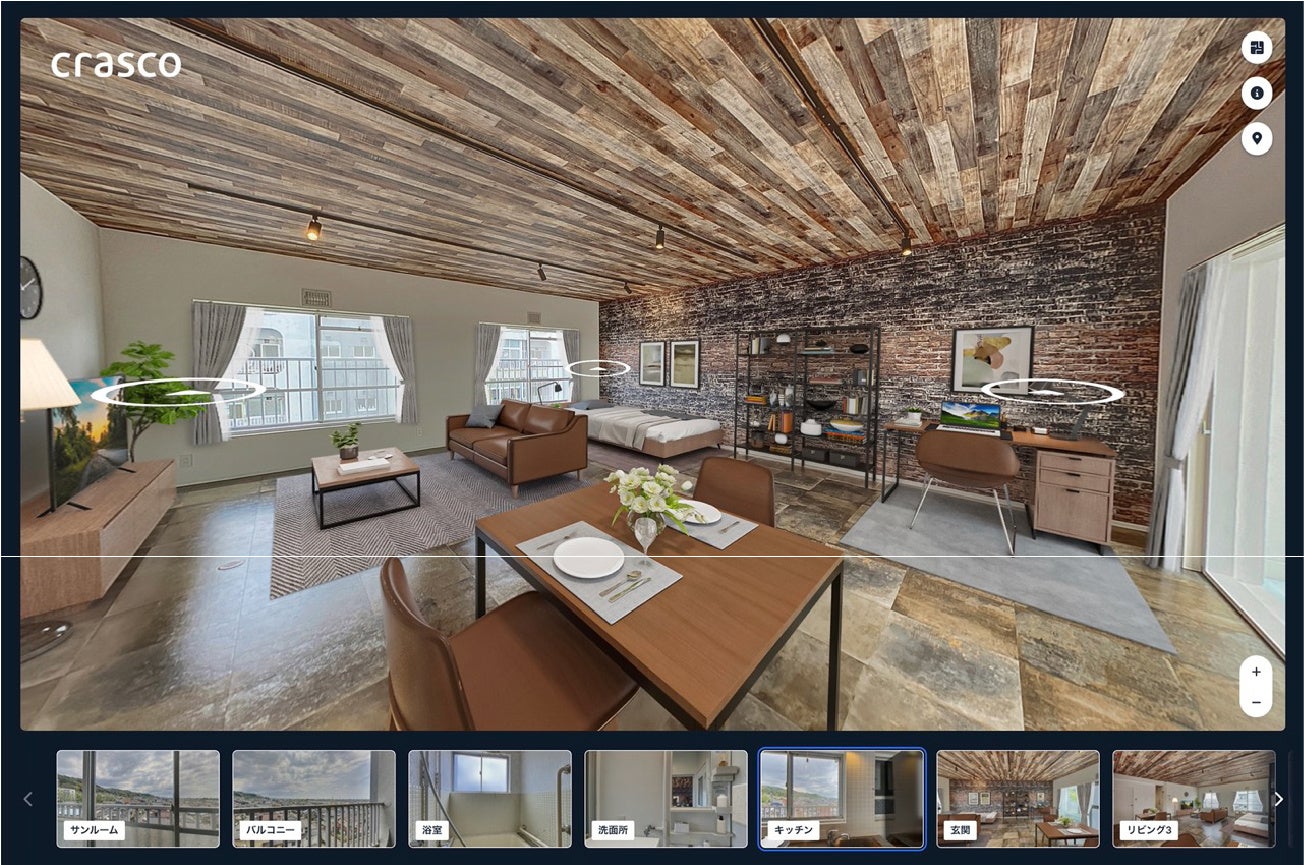 AIで物件の魅力を最大限に引き出した写真や、現地に行かなくてもお部屋を詳細に確認できるバーチャルツアーをWebサイトに完備しています。