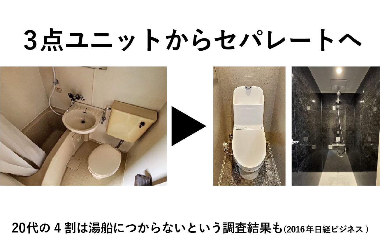 ⬛︎ 現代のニーズに合わせた「3点ユニットバス」の「シャワーブース化」