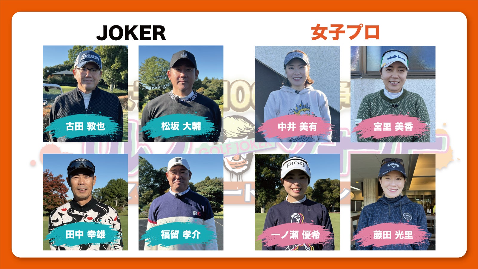 1月13日(月・祝)の「ゴルフの日」に放送する「GOLF JOKER ~ゴルフジョーカー~」では、特別企画として元プロ野球選手4名が参戦する「野球人JOKERスペシャル」を放送!古田敦也、松坂大輔、田中幸雄、福留孝介の4名が、優勝経験のある女子プロ4名と戦います。優勝賞金100万円を手にするのは誰なのか⁉お楽しみください!