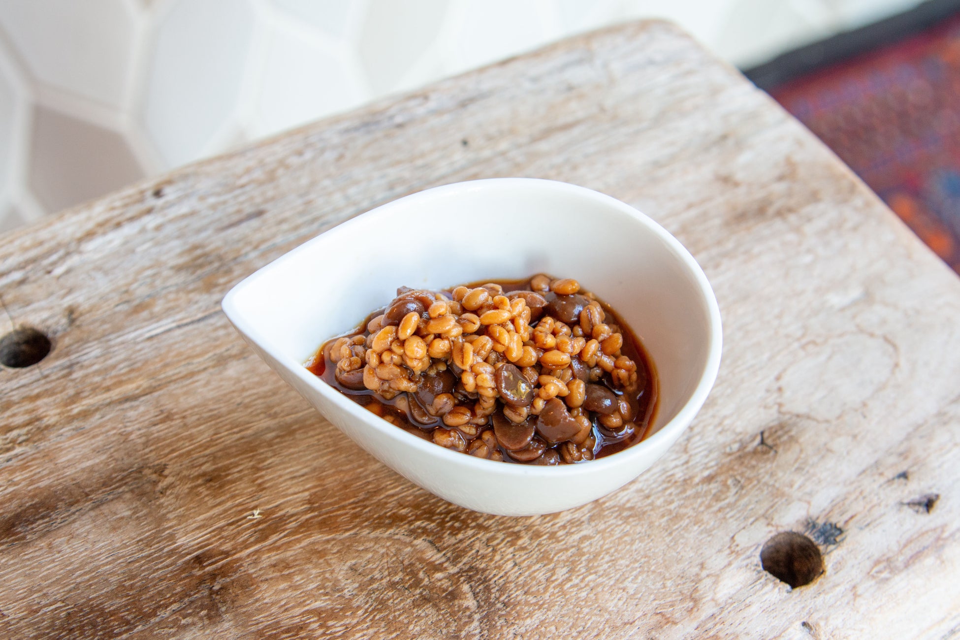 醤とは、奈良時代に中国から伝わった調味料で、現在の味噌や醤油の原型と考えられています。米麹と醤油で作られる醤油麹に似ているともいわれますが、醤油に豆麹と麦麹を加えて作る醤は、醤油麹より分解力が高く、アミノ酸が多く含まれていることから深いコクのある味に仕上がります。
