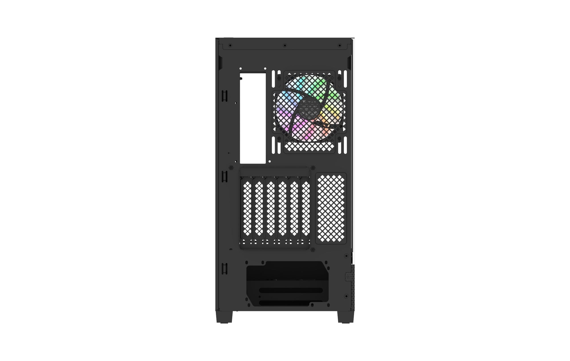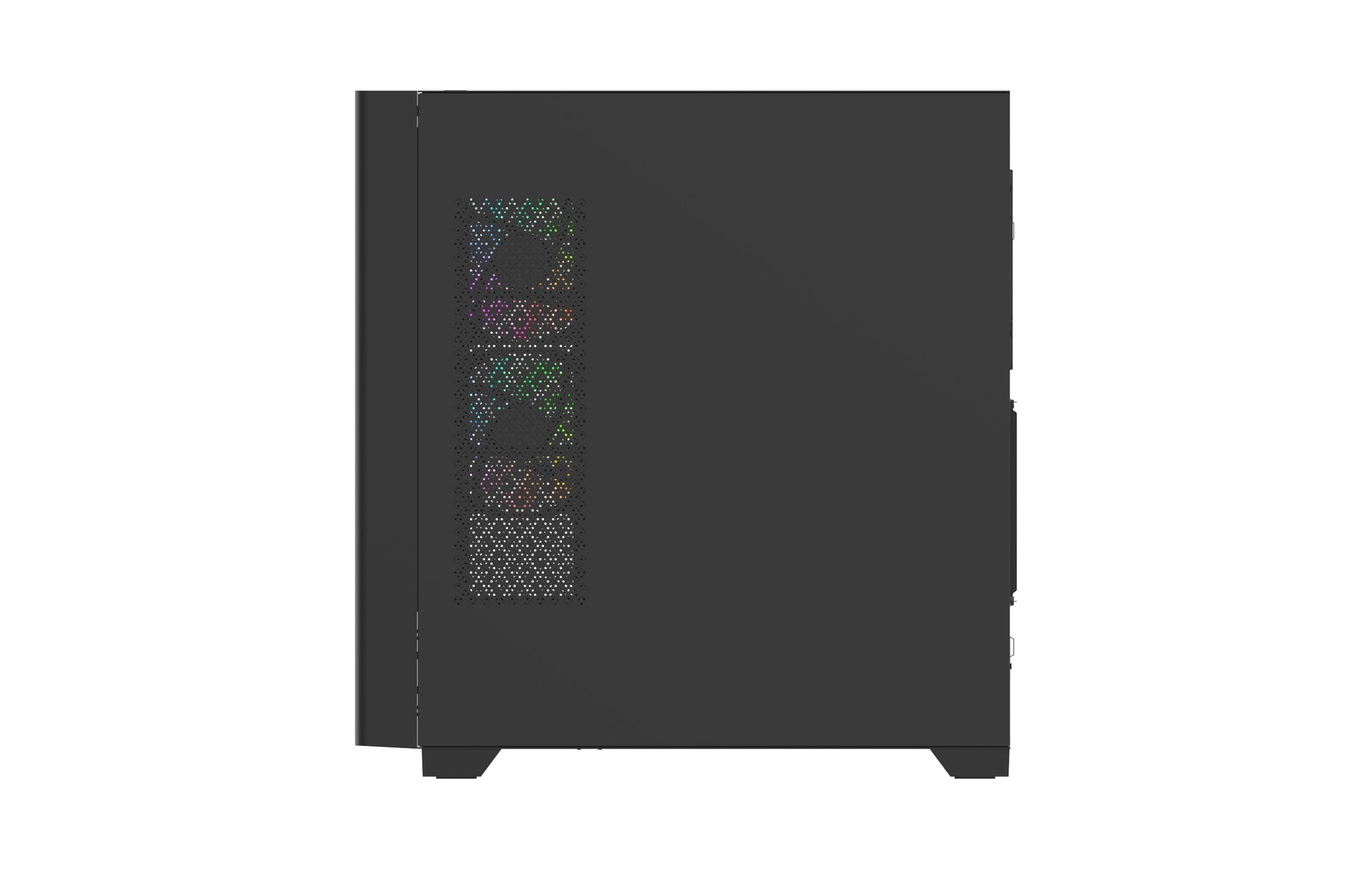 フロントに曲面強化ガラスパネルを備えたピラーレスデザインを採用。背面コネクタ設計のMSI、GIGABYTE、ASUS社製マザーボードに対応しており、自作PCならではの豊かなドレスアップを楽しめます。