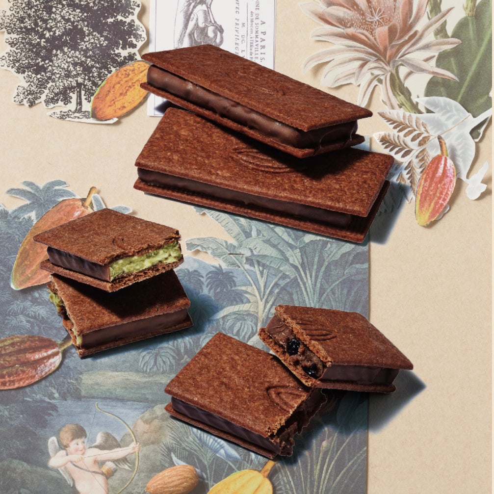 厳選したクーベルチュールで作ったガナッシュを、ショコラサブレでサンド。季節限定フレーバーも!
