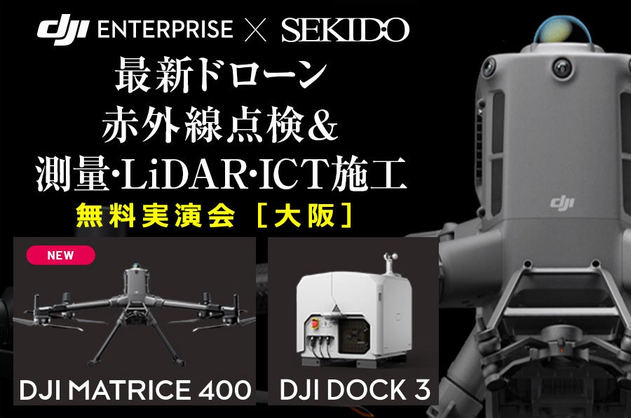 DJI(ディージェイアイ)正規販売代理店としてドローンビジネスの最先端を支える株式会社セキド(本社:東京都港区、代表取締役:⼤下貴之、以下「セキド」)は、株式会社旭テクノロジー(本社:兵庫県姫路市、代表取締役:幸長保之、以下「旭テクノロジー」)と共同で、2025年7月24日(木)に大阪府大阪市のDMS大阪校にて無料実演会「最新ドローン赤外線点検&測量・LiDAR・ICT施工 実演会」を開催いたします。